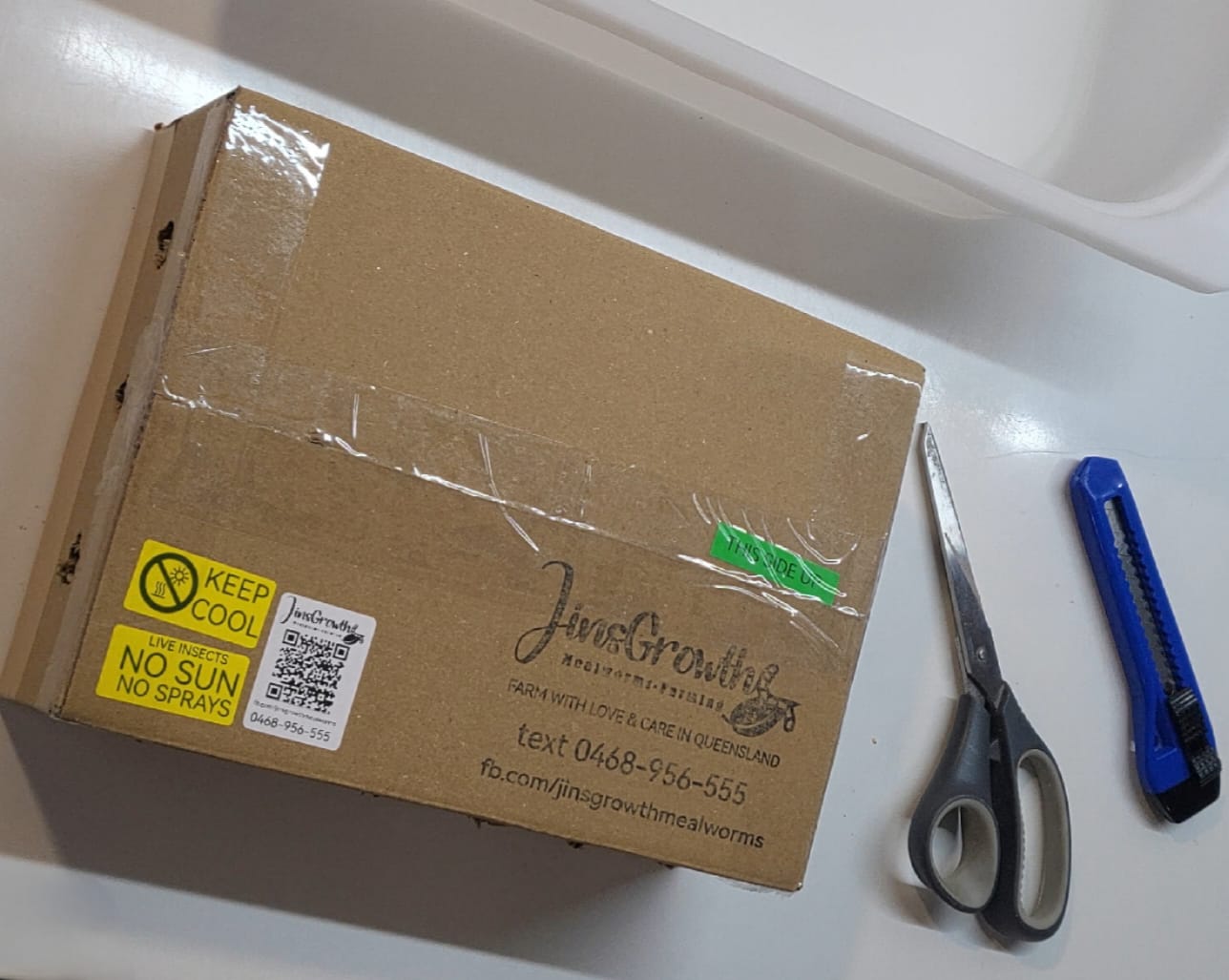 Upon receiving your Mealworms, simply unpack the bag from the postage box. Prepare a large storage tub and empty the bag of Mealworms and the paper into the tub. Carefully turn the bag inside out to remove all Mealworms clinging on the inside of the bag and the brown paper. We recommend unpacking your Mealworms on arrivals to minimize the risk of losses